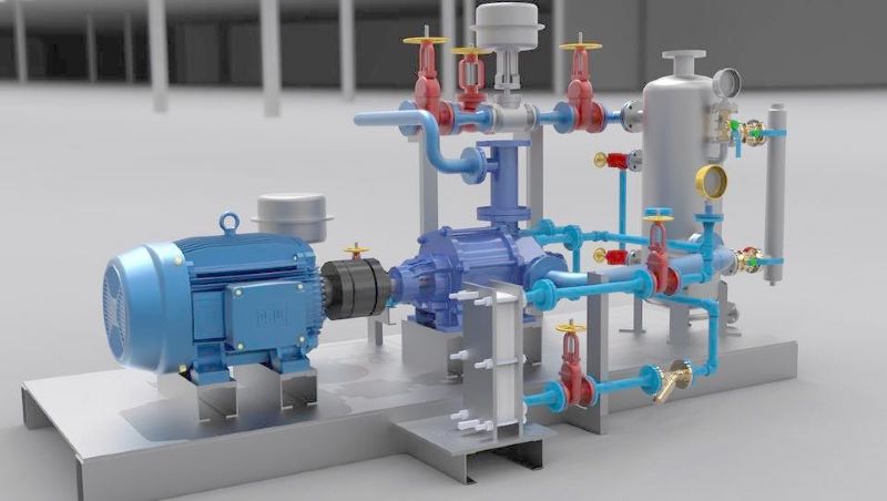 臥式泵水平布置(進(jìn)液管低于排液管),需要設(shè)置加溫氣(設(shè)置在泵后,或者泵前過濾器前,防止雜質(zhì)進(jìn)入),密封氣,排液排氣閥(低處排液,高處排氣)和回流管路(回液進(jìn)氣相),臥式泵轉(zhuǎn)速不能太高,一般排壓30barG以下,臥式泵由于水平布置,冷態(tài)收縮軸承受力較好,但是轉(zhuǎn)速高轉(zhuǎn)子動平衡不好滿足。
